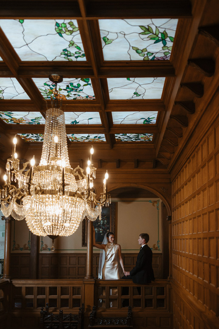 Step back in time as you enter the Van Dusen Mansion! You will be immersed in a lavish interior world adorned with rich woodwork, Persian rugs, stained glass windows and glistening chandeliers. Each room and space is different than the last as you move throughout the mansion.